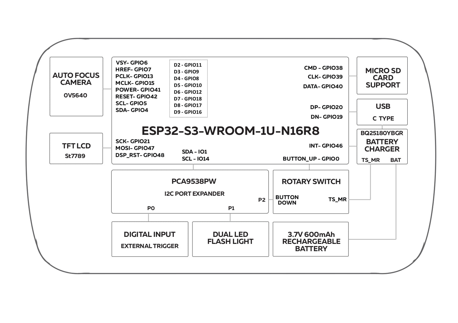 - ESP32 S3 WROOM Chip with 16MB Flash and 8MB PSRAM